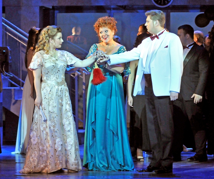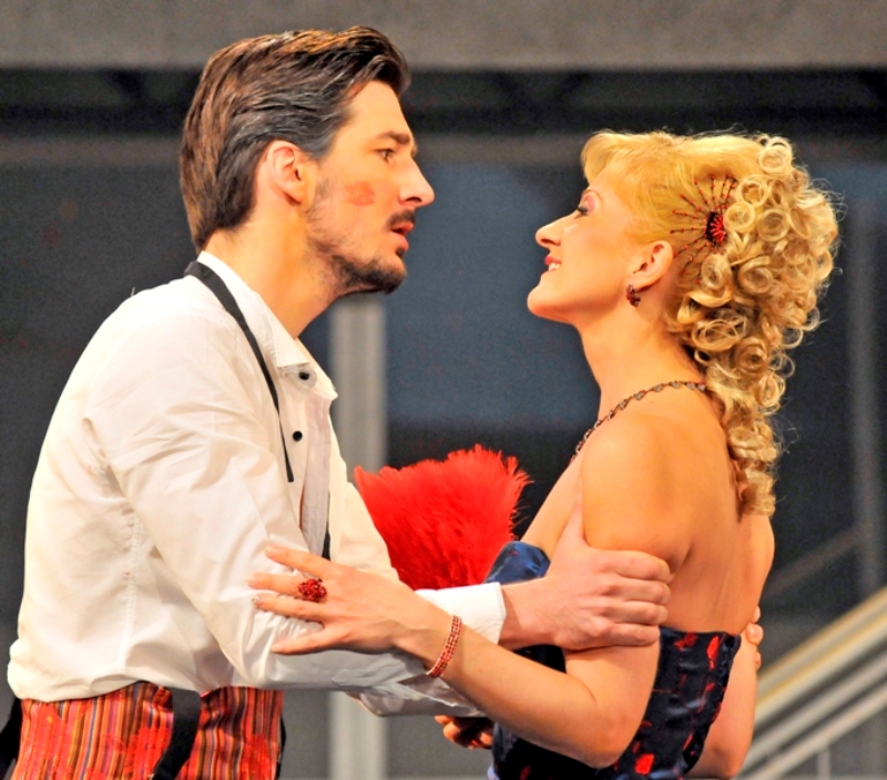 Glavári Hanna, gazdag özvegy - EPERJESI ERIKA/SERES ILDIKÓ Jászai-díjasDanilovics Daniló, követségi titkár - DÁNIEL GÁBOR/ÓDOR KRISTÓF